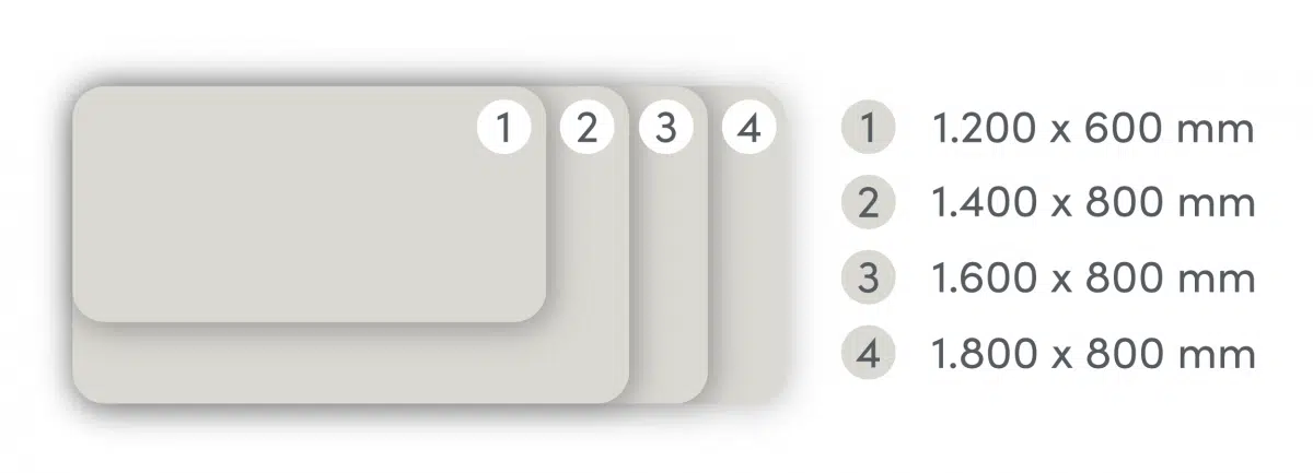 Tischplatten Formate – Mit den vier verschiedenen Größen findest du genau den Schreibtisch, der zu dir und deinem Arbeitsplatz passt. Alle unsere Farben und Dekore sind in diesen Formaten erhältlich.